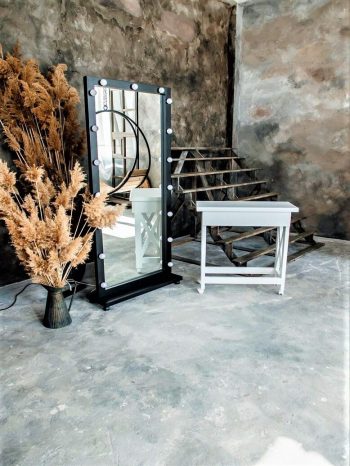 SOPHIA HOLLYWOOD MIRROR Mirror Dimensions- Height 24 inches, Length 18 inches, Width 1.5 inches Frame Finish– White LED Color: White Frame Material– Mirror, Philips/Syska LED bulb, MDF, white Duco paint High quality “Saint Gobain” or Modi Guard Mirror for clear view Shape– Rectangle Style-Classic, Country, Industrial, Lake House &