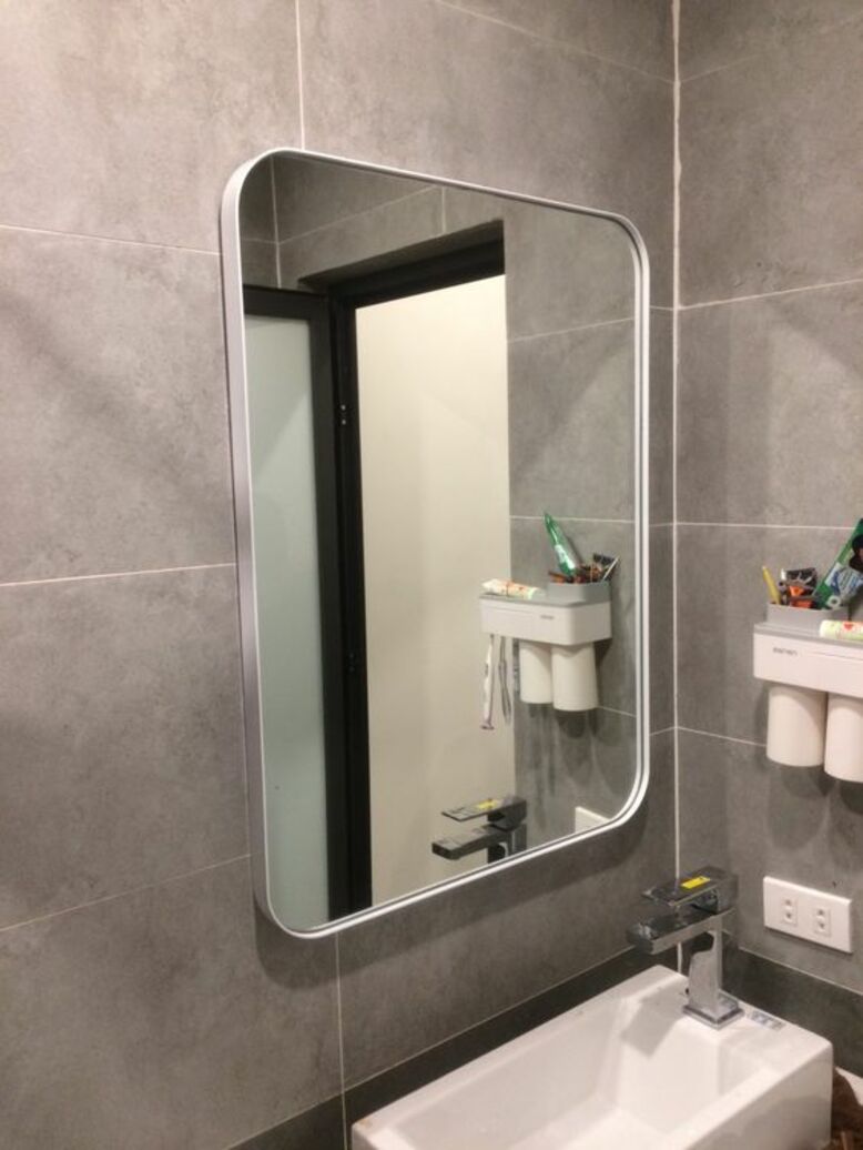 - Use standard glass cleaner on mirror.