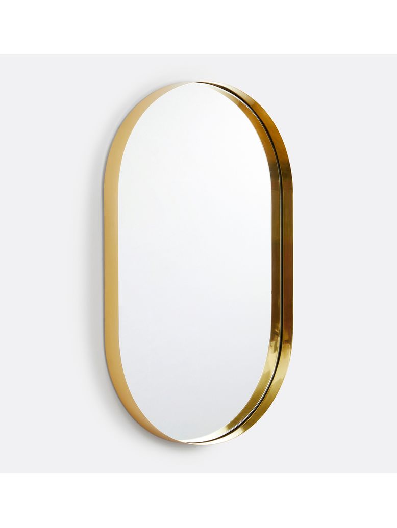 Crafted by hand with a stainless steel metal frame, our Metal Brass Pill Mirror comes in a range of versatile finishes. With a deep frame design, this modern mirror adds visual interest to any bedroom, bath, or living space.