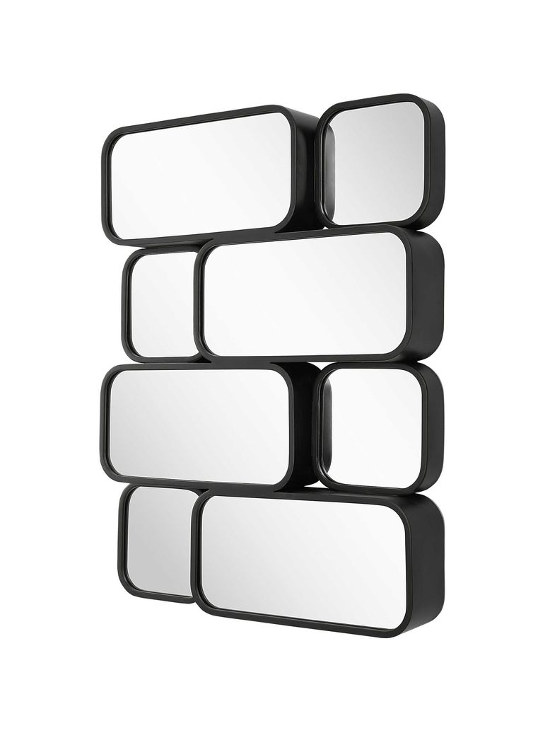 This Pacific metal mirror is constructed with a durable, powder-coated, metal frame and an inset mirror. The simple boxes easily coordinate with any transitional or modern room design. This pacific metal mirror frame construction adds a unique floating effect to your space.
