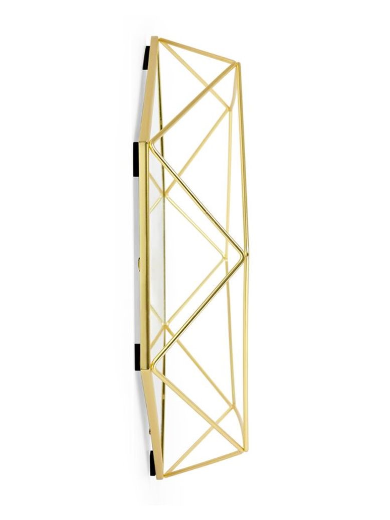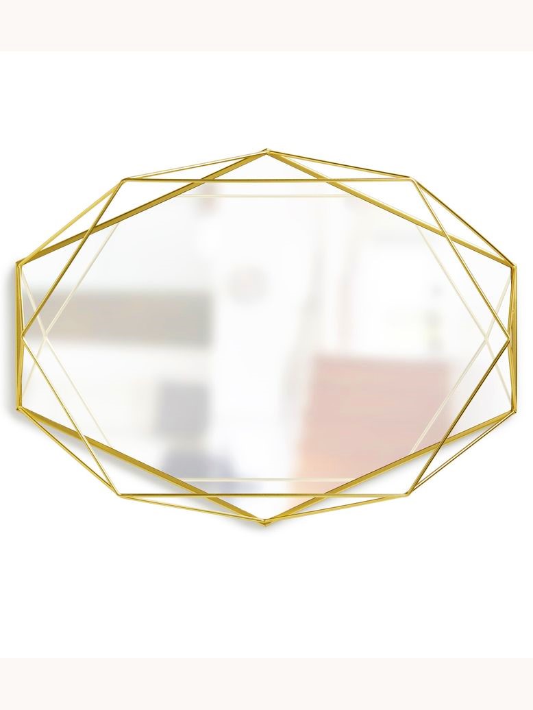 Prisma Modern Brass Mirror uses plated steel wire to create an eye-catching geometric picture frame that also functions as wall art. Attracting light to your room, this Prisma Modern Brass Mirror will make your space appear bigger and brighter. Prisma Decorative Wall Mirror doubles as storage space because you can use it to hang items like jewelry from its wireframe. This wall mirror measures 24 x 17 x 4 inches and is available in a range of modern finishes to compliment any room décor.
