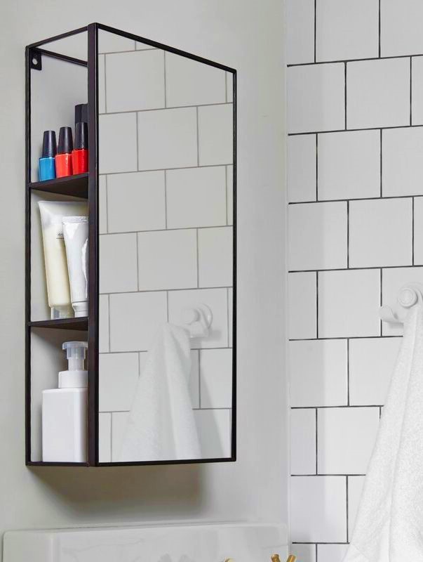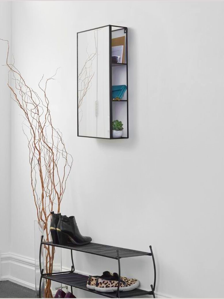 A modern take on the traditional medicine cabinet, Mirror and storage unit designed to make the most of small space living. Tucked behind mirror are convenient storage shelves that are easily accessible from either open side. This rectangle storage metal mirror innovative design makes ideal for storing bathroom accessories, daily essentials like car keys and sunglasses, and so much more.